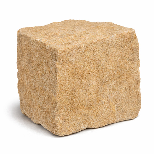 Zur Herstellung unseres Sandsteinpflasters wird der Naturstein zunächst in größere Blöcke gebrochen und anschließend in handwerklicher Arbeit in annähernd quaderförmige Pflasterstücke geteilt. Die natürlich gebrochenen Kanten und die leicht unregelmäßigen Oberflächen verleihen dem Pflaster seine warme und rustikale Optik.